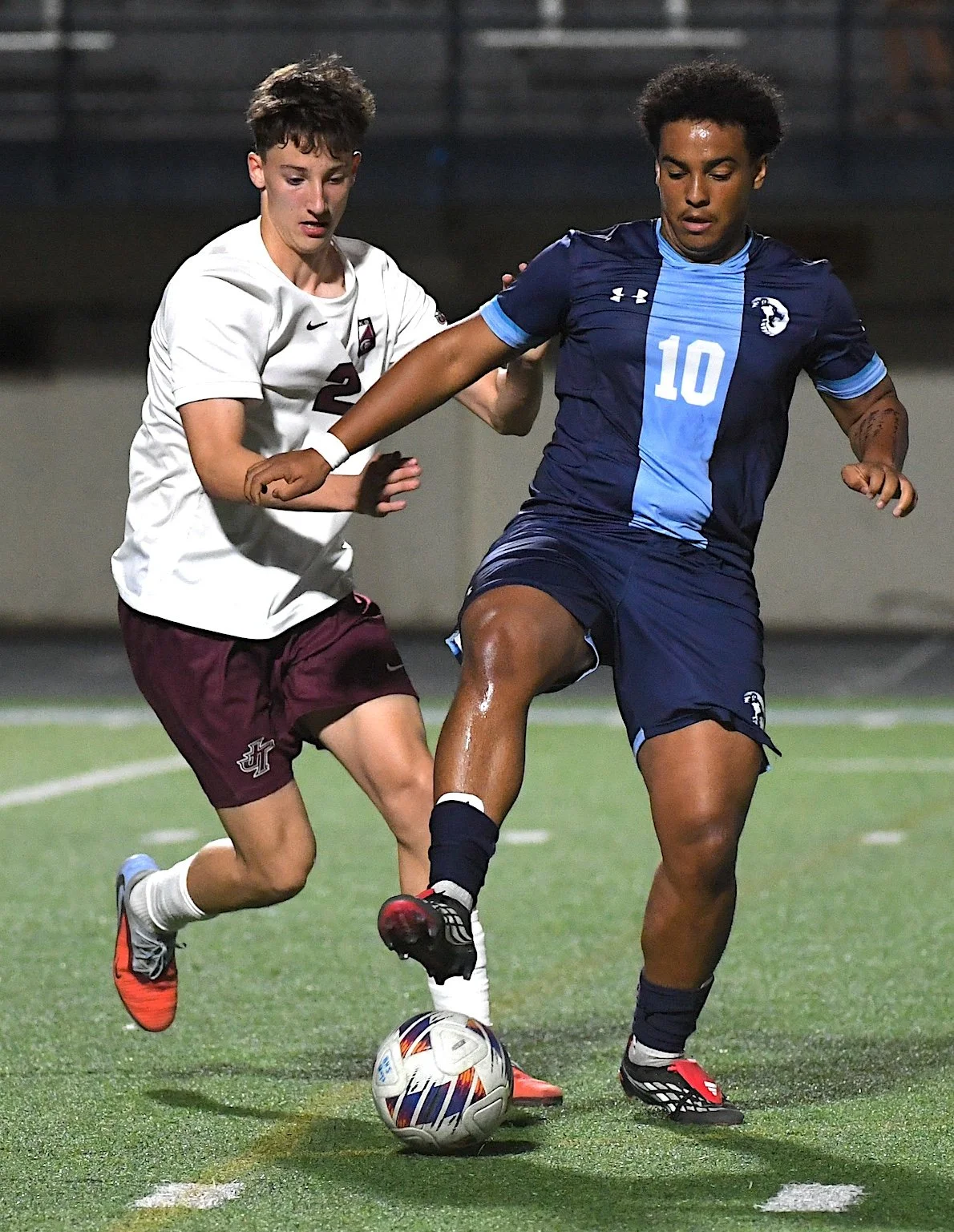 Bartlesville High School’s Jackson Belong (10) controls the ball against a Jenks player on March 31 in Bartlesville. The Bruins defeated Jenks, 1-0. Next up, Bartlesville hosts Westmoore Tuesday at 8 p.m.
