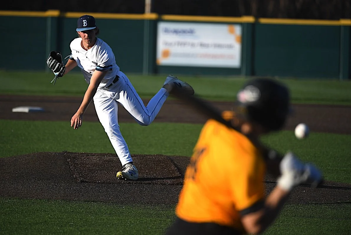 Bartlesville High School’s Sam Hill (3) pitches to a Sand Springs batter earlier this month. The Bruins played in the Gulf Coast Classic Baseball Tournament in Gulf Shores, Alabama over spring break.
