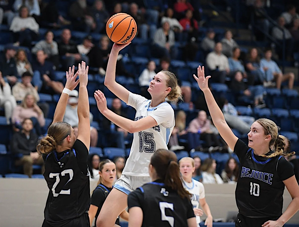 Kenzie Denny added 16 points, four boards and five assists, while Emma Zimmerman drained four points, ladled up six assists, seized three rebounds and made three teals. Jaylin Manley added seven points and two boards.