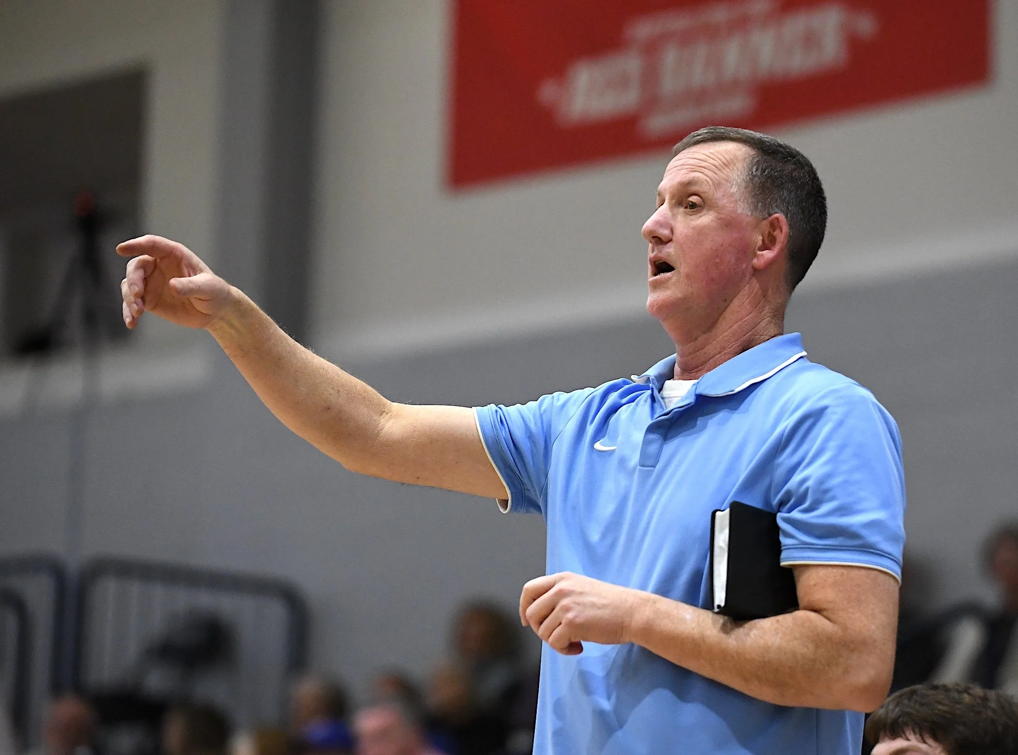 Oklahoma Wesleyan University Eagles head basketball coach Donnie Bostwick always has a bible in hand while on the court. Bostwick earned his 500th win on Nov. 19 with a win over Friends (Kan.) University.