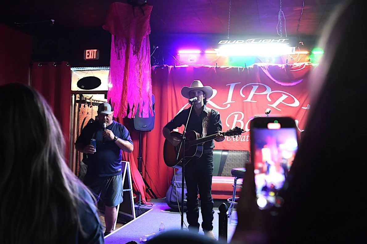 Austin Dixon performs at Tripp’s Bar in Nowata on Oct. 23 as part of Dad’s Walk 2025. Several other artists performed as well.