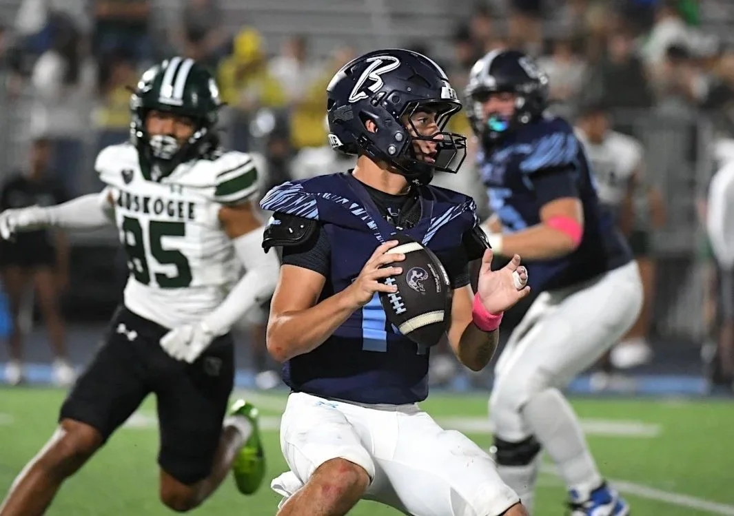 After recovering an onside kick to open the game, the Bruins moved the ball quickly for a touchdown on a pass from Michael Kent to receiver Harrison Ketchum. It was one of the few times this season the Bruins have taken the early lead. Dillon Burson’s extra point kick put Bartlesville on top, 7-0.