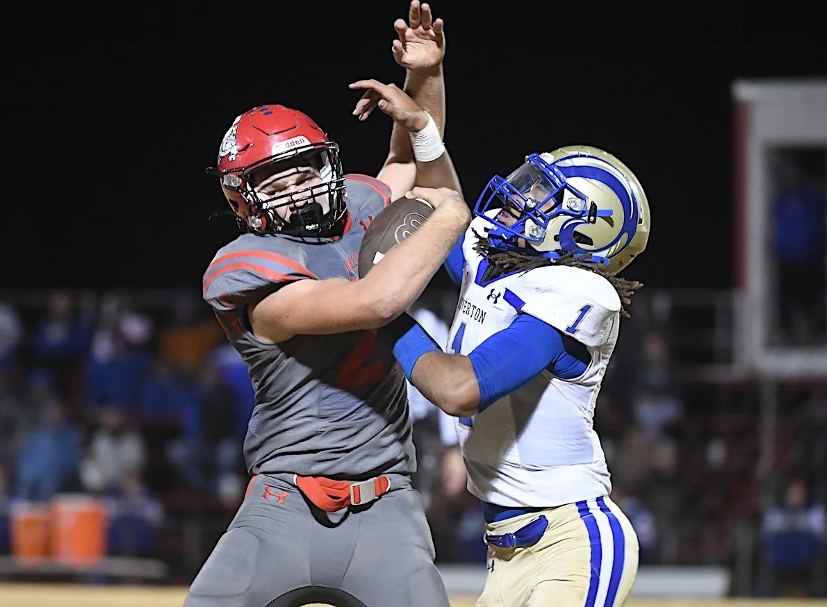 Caney Valley found the end zone in the second quarter on Garton’s two-yard run — he also ran in the two-pointer — to trim Riverton’s lead to 21-16.