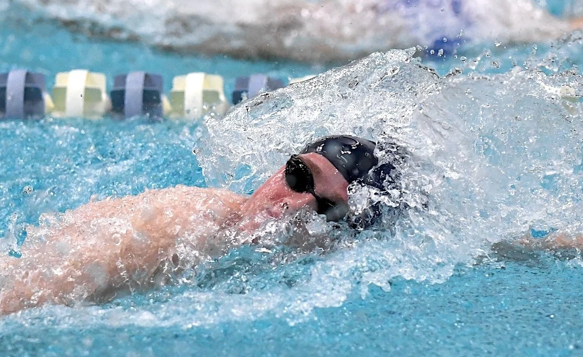 Bartlesville High School’s Parker Shoesmith swims during an earlier season meet. The Bruins participated in the Tulsa Union tri-meet Tuesday night.